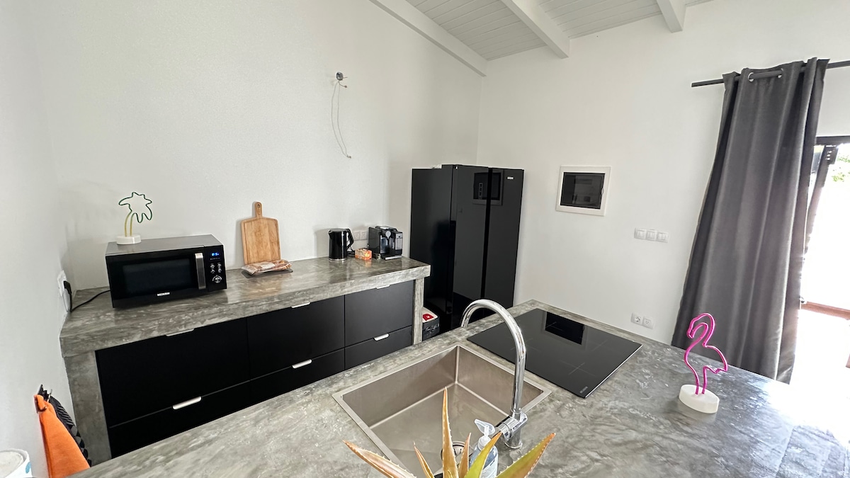 Adult Only, just 1 min from BachelorBeach! Perfect location for divers, kiters, and surfers. Exactly between the popular beaches for windsurfing (Sorobon) and kitesurfing (Atlantis) and the City Center (all in 5min). Design studio appt. with spacious kitchen and bar, grande ensuite bathroom. Private parking, smart tv, lovely garden with plenty of palm trees, bbq, and chill space. All linens included. High-speed WiFi (fiber