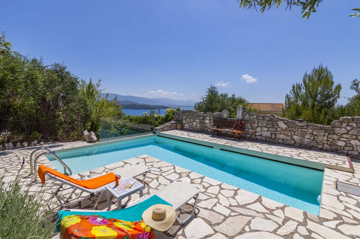 Villa Bacchus, a traditional-style Greek country cottage with a sea view swimming pool.