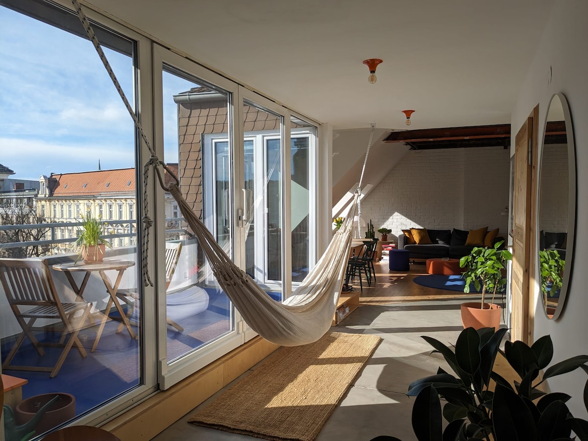 Welcome to our cozy apartment in the heart of one of the best districts in Berlin, Kreuzberg. Surrounded by great restaurants, you will live cozy and quite. You will have a private entrance, a private bathroom and a spacious room with a queen sized bed. You will have more than enough storage. The place has no kitchen, but there is the best restaurants right downstairs. Important: It is 5th floor so a lot of stairs. Not recommend if you have have trouble walking up stairs.
