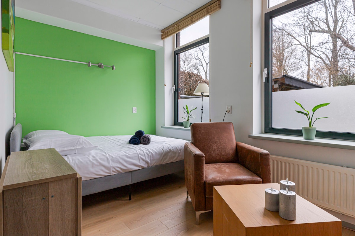 Welcome! We offer you your own entrance, bathroom and kitchen! Do you like the country side? Enjoy the peace of our spacious gardens, the lovely fireplace and our 'royal' breakfast. (€17,50 /PP) The entrance of our property is protected with a visible outdoor camera. Lekkerkerk is in the Green Hart of South-Holland. Visit the world heritage windmills of Kinderdijk or our local cheese farm on our rental bikes (€10/day) to have the ultimate Dutch experience. WIFI 58,5 /23,7 Mbps .