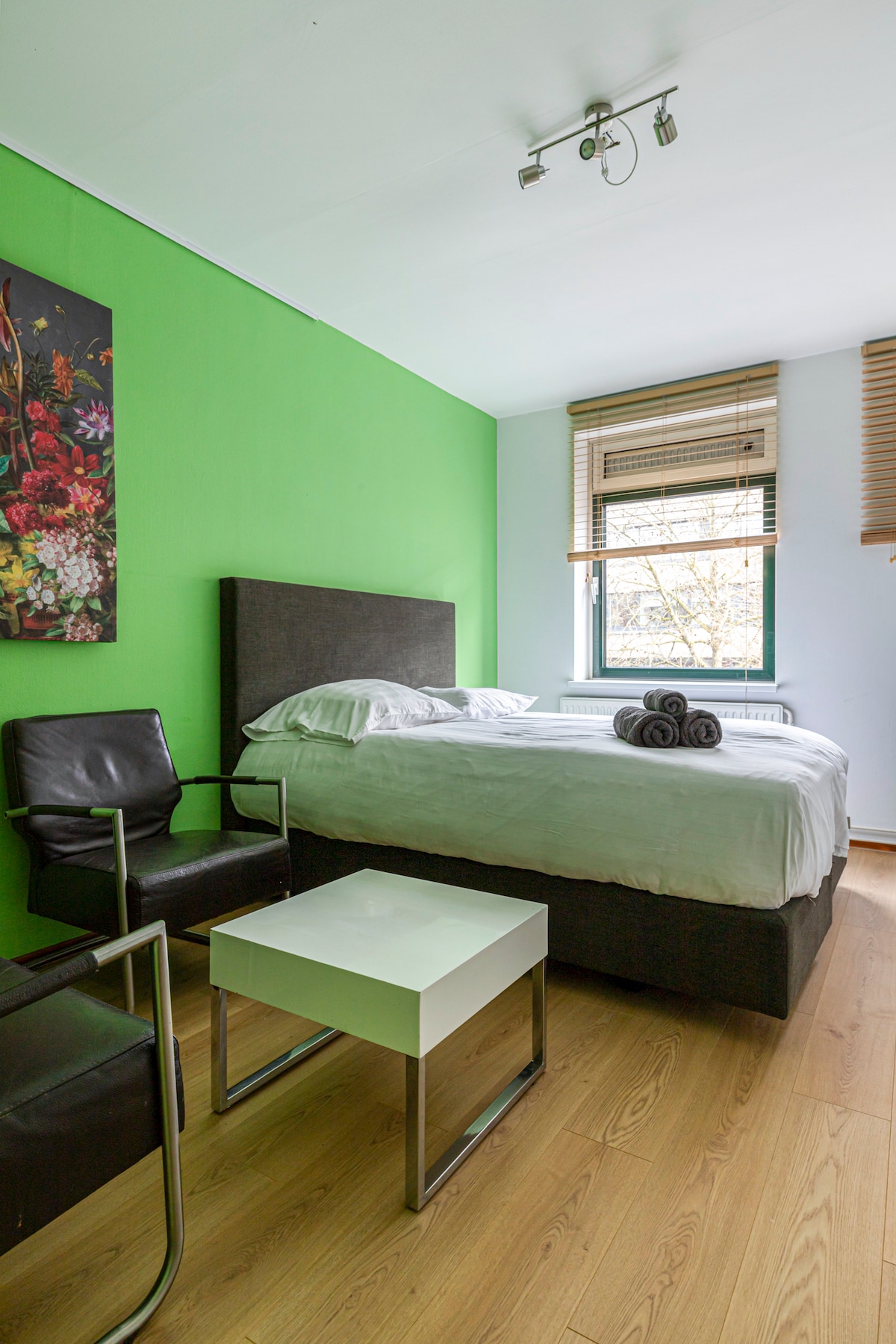 Short stay! This beautifully renovated, and quiet, apartment is located in the heart of Gouda, directly on the market square and near the iconic Sint-Jans Church. The apartment features a spacious living area, Smart TV with free Wi-Fi, fully equipped kitchen with island, two bedrooms, and a modern bathroom. The maximum occupancy is 4 guests, making it ideal for families, friends, or business travelers looking for a stylish and centrally located stay in Gouda.