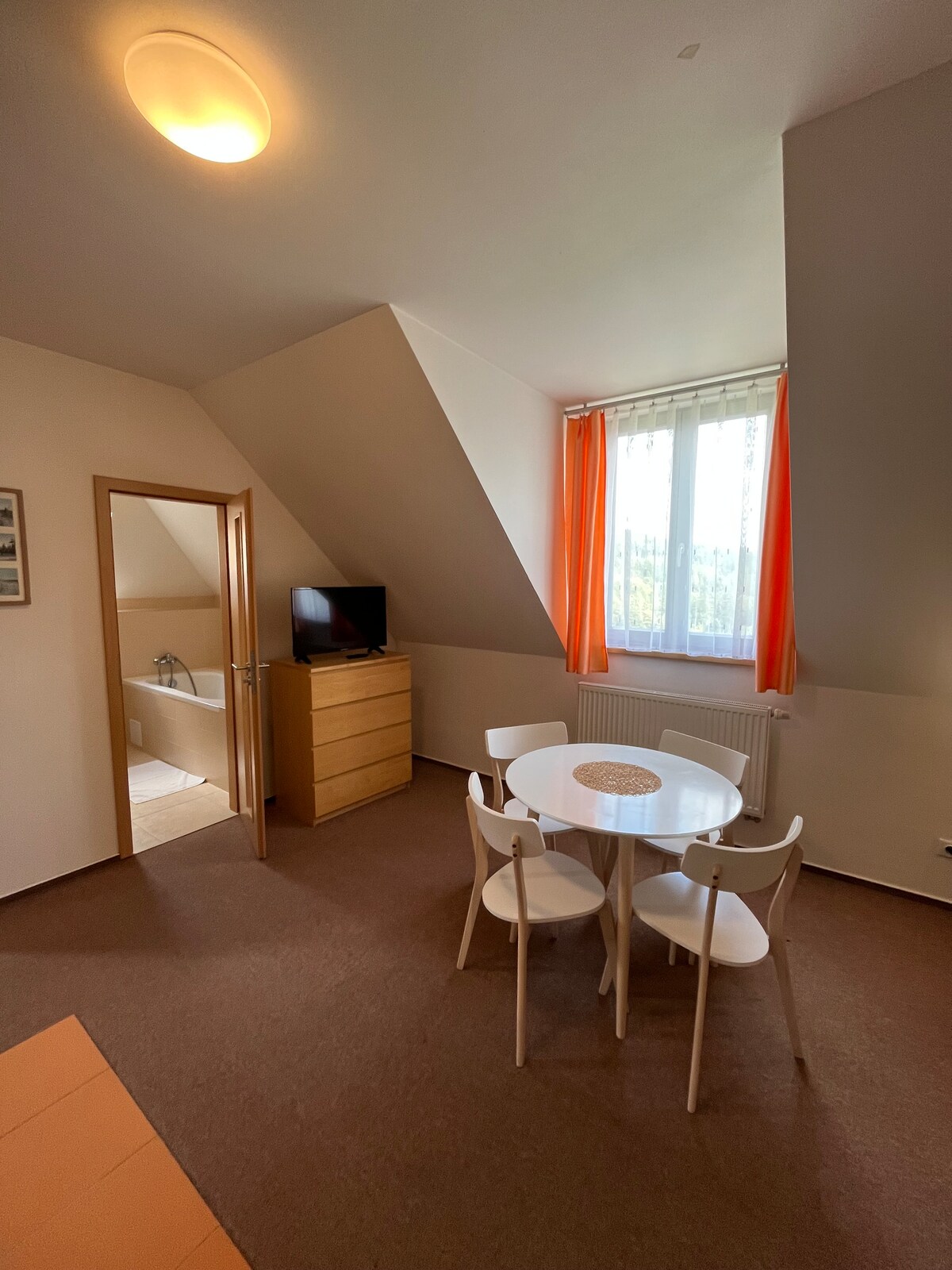In the city center, bus stop to Bedrichov 20 meters. In Bedrichov a lots of opportunities for mountain biking in the summer or skiing and cross-country skiing in the winter. Accomodation available for single travelers, families with kids. Small pets are OK. Breakfast is included and it is served in the deli store Lahudky Vahala (downstairs, same building as the apartment).