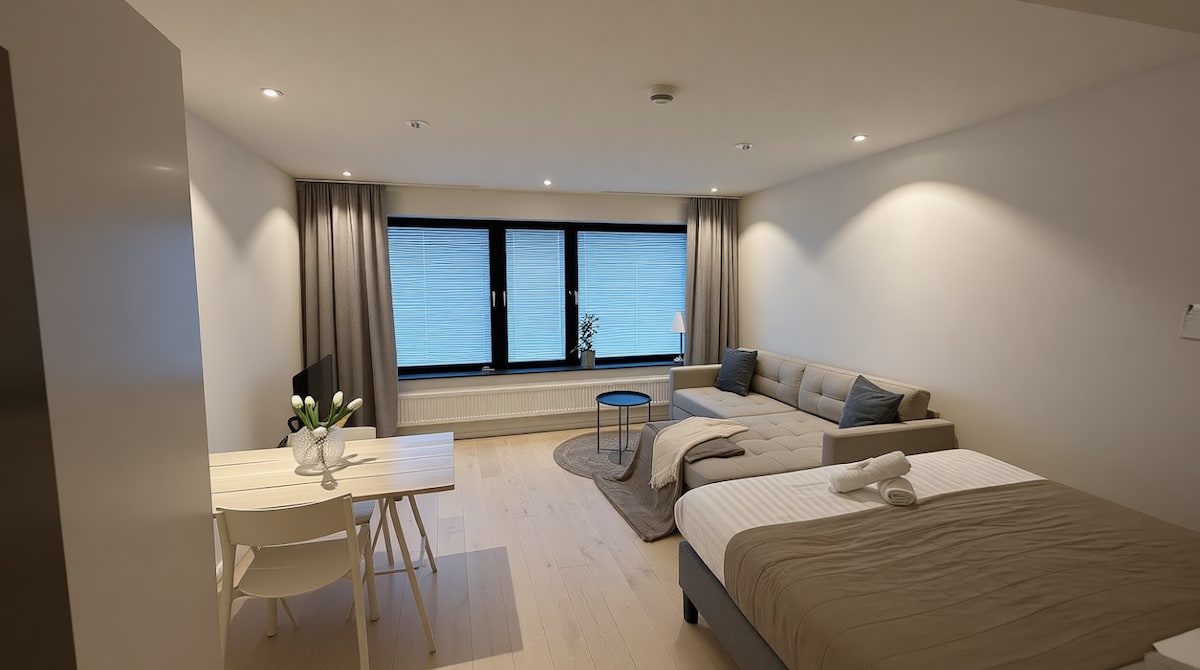 This is my cozy little space close to the city center of Växjö. It is about 30m2 big and has everything you need for a comfortable stay. On the picture it might look bigger than that, it was important for me to show everything that is in the space. inside the apartment you find a kitchen with everything you need to prepare you own meals. If you’re looking for a place that gives you the feeling of a relaxing hotel with the opportunity to cook for yourself if you want to than this is for you.
