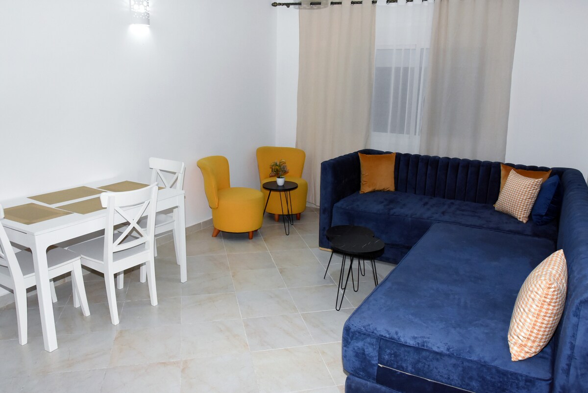 Welcome to our brand new two-bedroom apartment located in a prime area of Tangiers. This upscale property is situated in one of the most sought-after areas in the city with 24-H concierge & is only a 10 min walk from the Train Station, City Centre Mall, Ibn Battuta Mall and beaches. It offers both convenience and luxury at your doorstep. Private parking available. The apartment boasts: fibre optic WiFi, an option for chauffeur and a Moroccan breakfast prepared by our governess (additional cost)