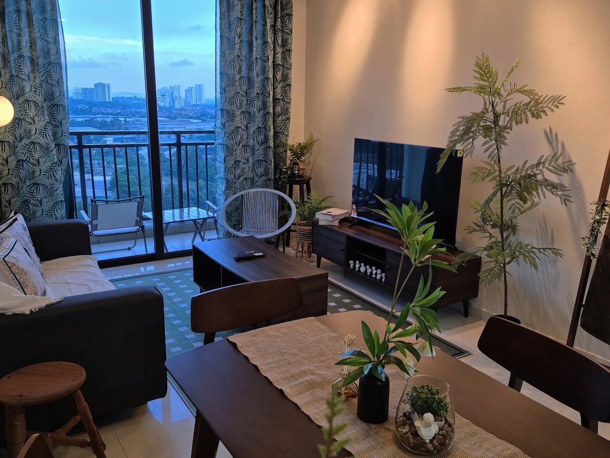 Welcome to our cozy and muji style 1+1Bedroom 4pax homestay !! Our homestay located in the heart of Bukit Indah. Whether you're here for business or leisure, our space is designed to provide you with comfort and convenience. ❤️ Our unit is conveniently located near Aeon Bukit Indah, Legoland or JB town. There's plenty of restaurants, cafes and massage center, cinema, entertainment and etc in the neighborhood. Walking distance also can go aeon bukit indah and lotus supermarket 🚶🏻🛍️