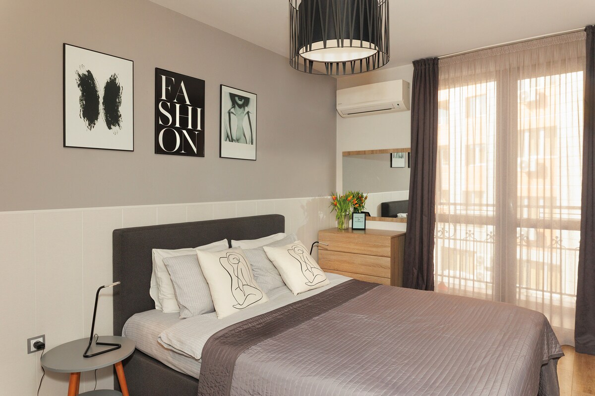 With a completely modern look, our one-bedroom apartment is now ready to welcome you! The elegant interior is carefully chosen to make you feel just like at home. The flat is fully equipped with everything you need either for your short or long-term stay. At your disposal is also a parking spot. Strong Wi-Fi connection is covering the entire property. The space is disinfected according to the Flat Manager Sanitary Standards.