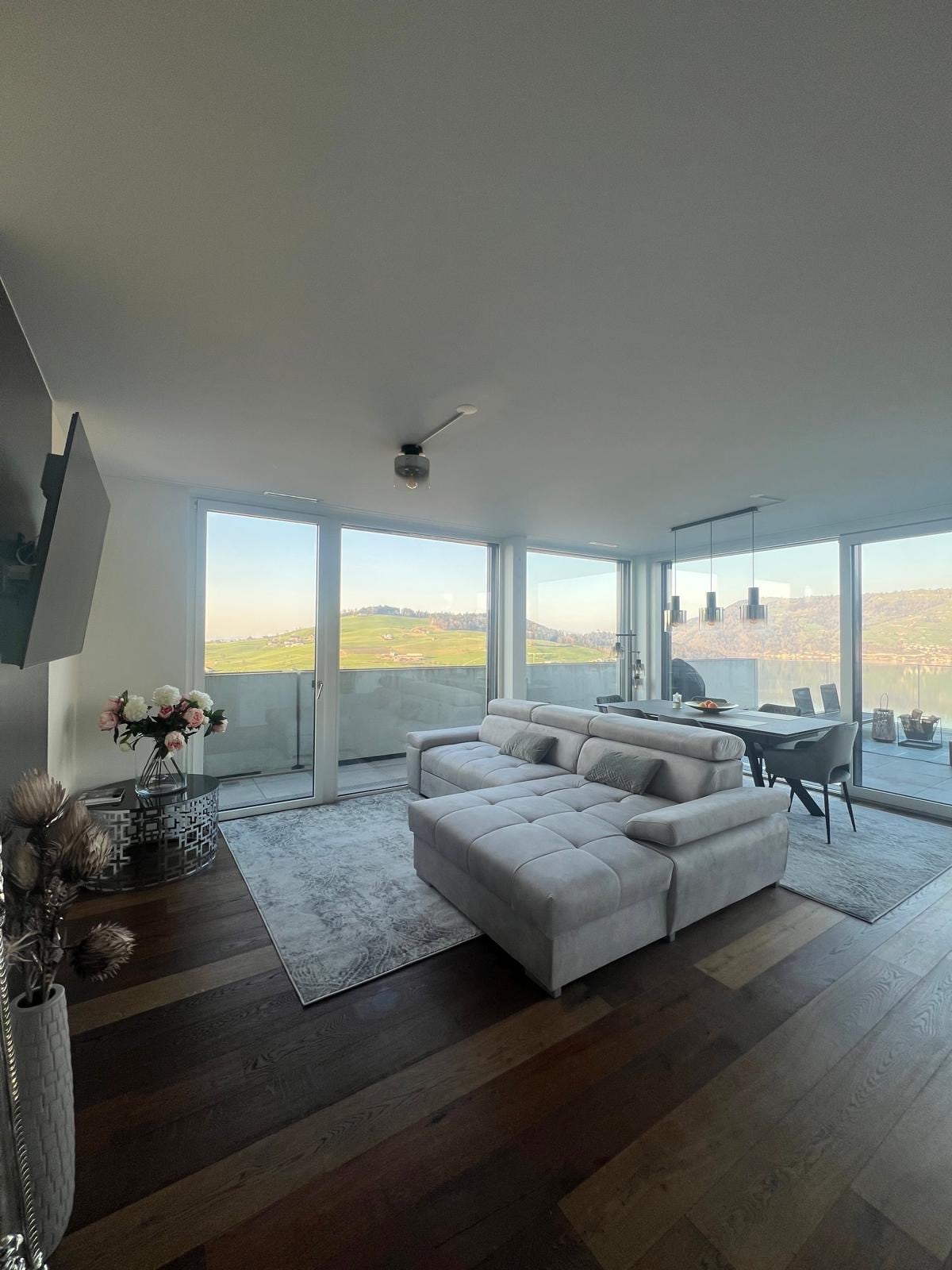 Welcome to your new home! Unparalleled 180-degree views of Lake Zug, the Queen of the Mountains (Rigi) and the Glarus Alps. The architecture of the new modern apartment is optimally aligned with the view, with large window fronts that let in a lot of light. Immensee SZ offers a perfect combination of tranquility, closeness to nature and quick access to the centers (e.g., Zug and Lucerne are 15 minutes by car). Your visionary jewel is waiting!