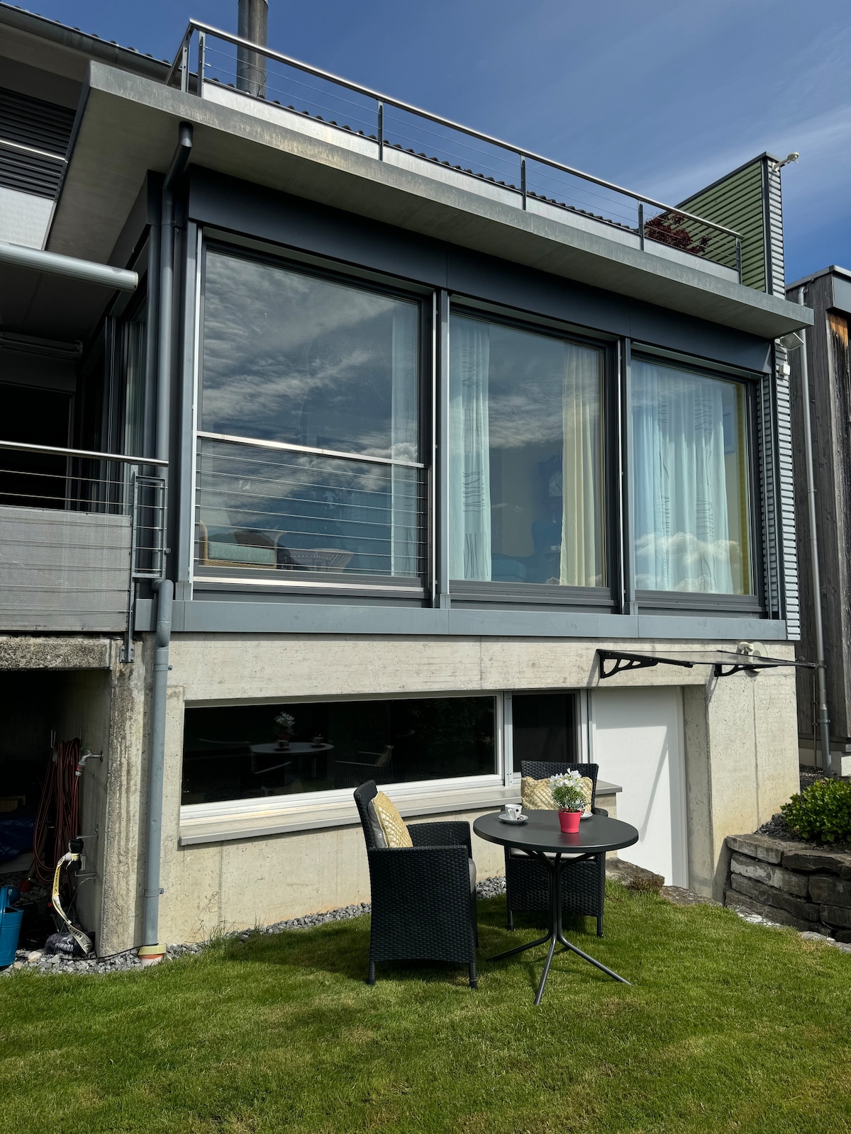 Exclusive villa with 4 bedrooms and 2 bathrooms, offering panoramic views of Lake Zug, Mount Rigi, and the Alps. Three terraces, outdoor sauna, modern kitchen, elevator, Mediterranean ambiance. Garden with barbecue in a quiet lakeside area. Ideal for families and friends who value space, tranquility, and nature. Swimming, water sports, hiking, and cycling at your doorstep. 3 parking spaces, Tesla charging, washer and dryer. Zug and Lucerne about 20 minutes away, with bus and train.