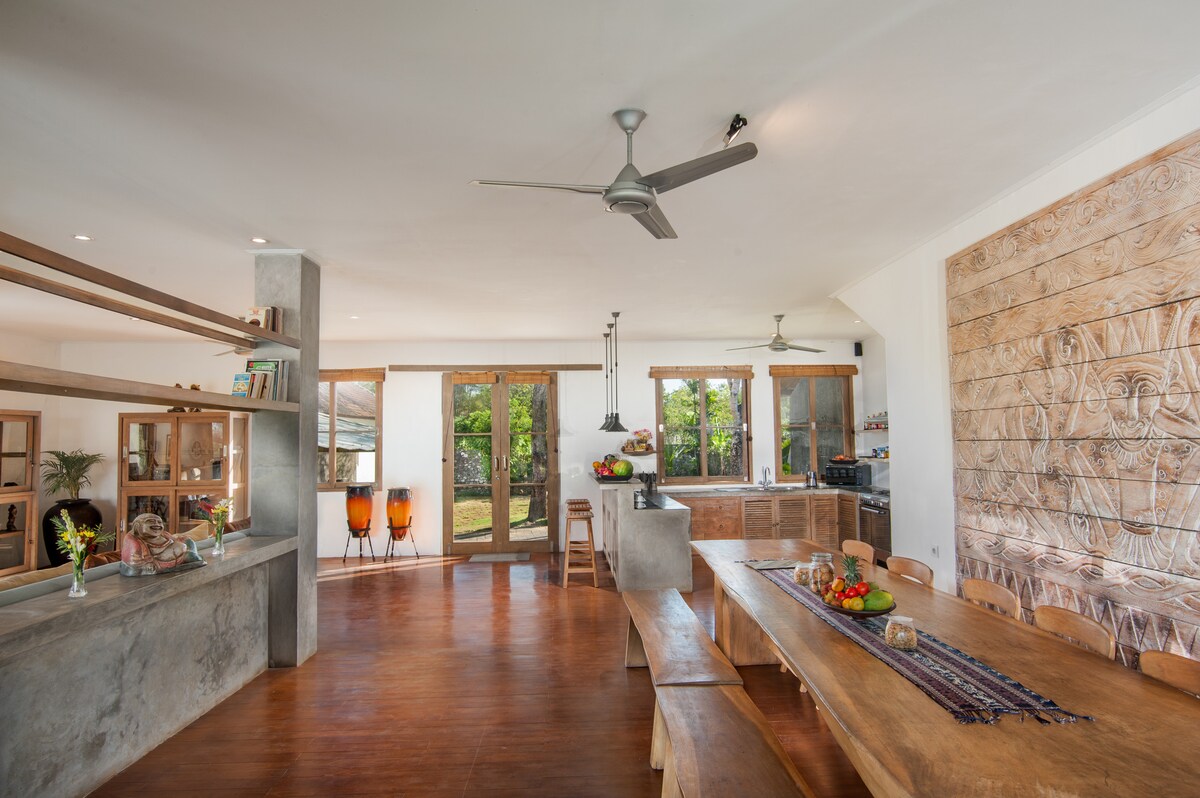 A luxury lifestyle cliff top ocean view pool villa, with 7 suites and studios, set in beautiful gardens, cascading ponds and a 135 m2 pool. Anything to celebrate? Our villa manager gladly assists you with special dinners, celebrations, transport, tours and outings , massages and our famous home cooked Balinese dinner, Balinese BBQ menus or our famous Whole Roasted Pig dinner More than 12 guests? check out additional guest fees or our Tirta Kencana in the same location - Airbnb listing 8284831