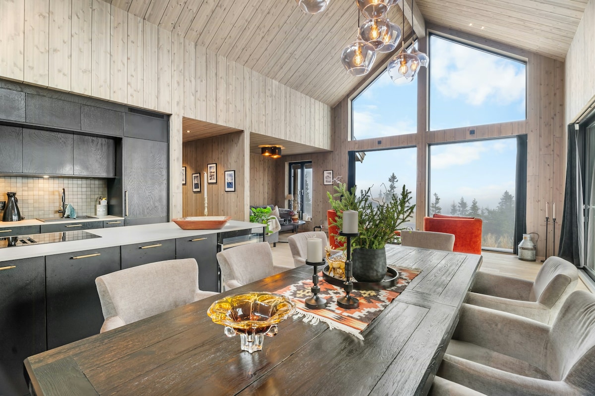 Newly built and well-equipped cottage (120 m2) with high standards and good ski in/out. Approximately 70 meters to the chairlift and about 10 meters to illuminated cross-country trails and nearby hiking. Nice and sunny terrace overlooking Gaustatoppen. Ideal cottage for 2 families with 4 bedrooms, kitchen, living room, fireplace, 2 TVs, WiFi, sauna, washing machine, electric car charger type 2, bathroom, extra toilet. One bedroom and separate TV corner for the children upstairs. Barbecue grill and outdoor furniture are available. NOTE: Due to allergies, pets cannot accompany you