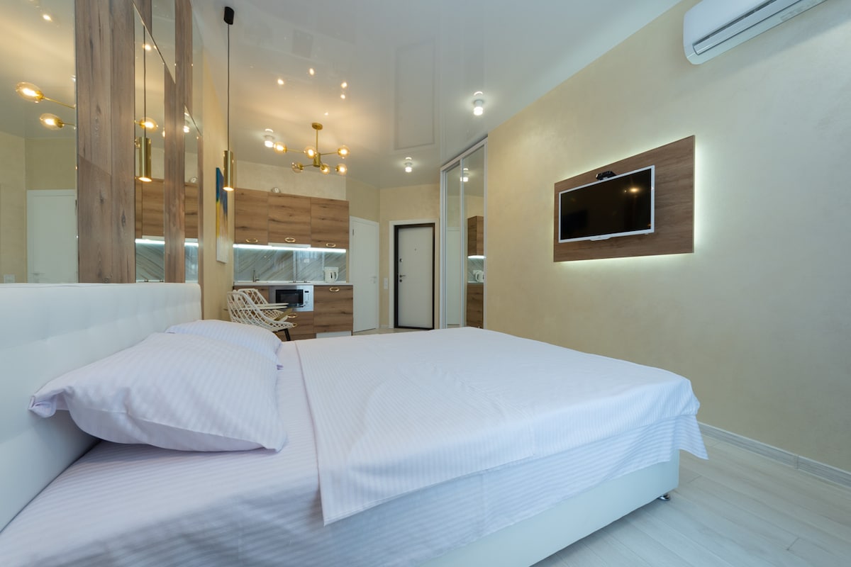 Discover minimalist peace in our designer 1-bedroom apartment in Kyiv’s heart. Space: Queen bed, Smart TV, AC & high-speed Wi-Fi. Kitchen: Fully equipped with coffee/tea. Location: New building near Universytet Metro & Shevchenko Park. Quiet, yet steps from top cafes. Perks: Private balcony, city views, and easy self check-in. ✨ Clean, serene, and perfectly located. Book your unique Japandi experience today!