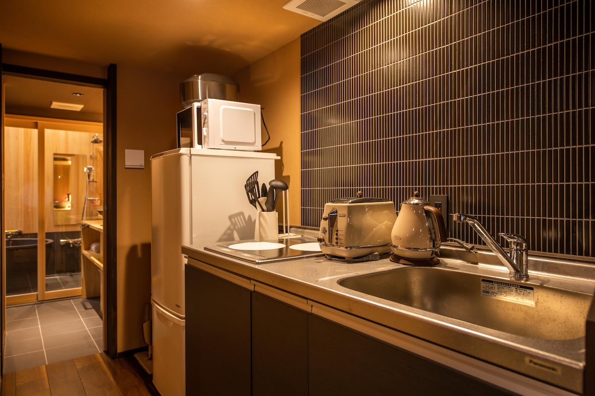 Renewal Open! Same rate for up to 3 guests. Located in central Kyoto—just 5 minutes to the station and grocery store, and 8 to Nishiki Market. Cook in the fully equipped kitchen or explore nearby restaurants and shops. Relax in the cypress wood bath and sleep in a queen bed by Japan Bed Co., supplier to the Imperial Household. The space has 2 sinks, 2 toilets, washer-dryer, and a large closet—perfect for long stays. Please note: Kyoto City accommodation tax is payable in cash at check-in.