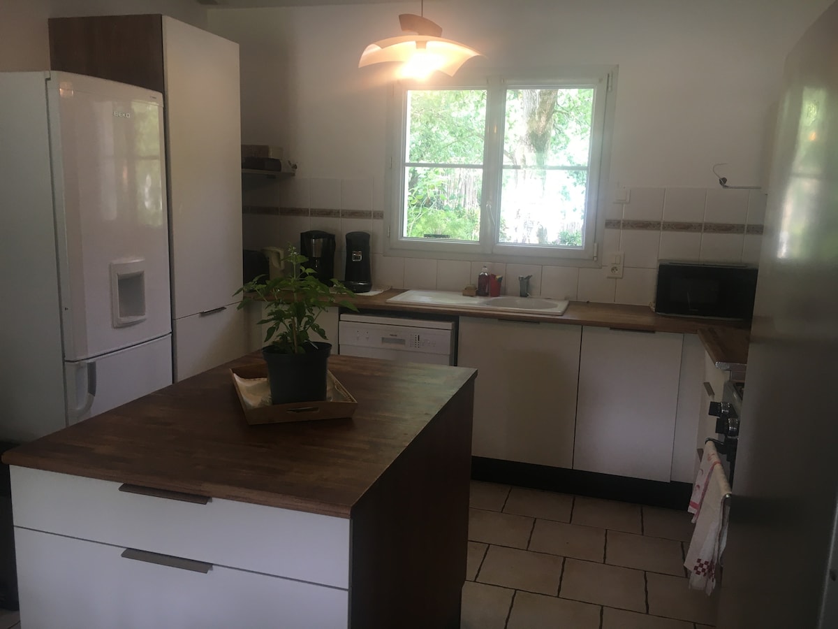 High-quality, south-facing, complete accommodation. Environment in a green setting ideal for your business or tourist stays. For 2 people, possibility of 4 (sofa bed) The first shops are 900 m away. Forest walk 400 m away. 10 min from Lac de Grand Lieu, 30 min from the first beaches, 25 min from Nantes airport, 20 min from Planète Sauvage. We are Etienne & Caroline, we have 3 children.