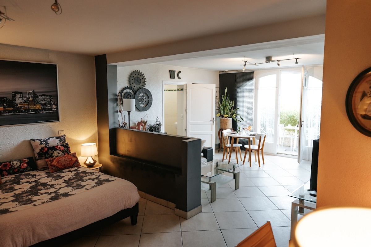 Forget your worries in this spacious and serene studio. Apartment located on the ground floor of our house with an area of 42 m2 Terrace & parking for 1 to 2 cars. Fully furnished and equipped. Kitchen with oven, microwave, induction stove & dishwasher Smart TV with Netflix In the bedroom you will find a 160 x 200 cm box bed. The bathroom is equipped with a washing machine. Monthly rental possible, contact us to learn more.