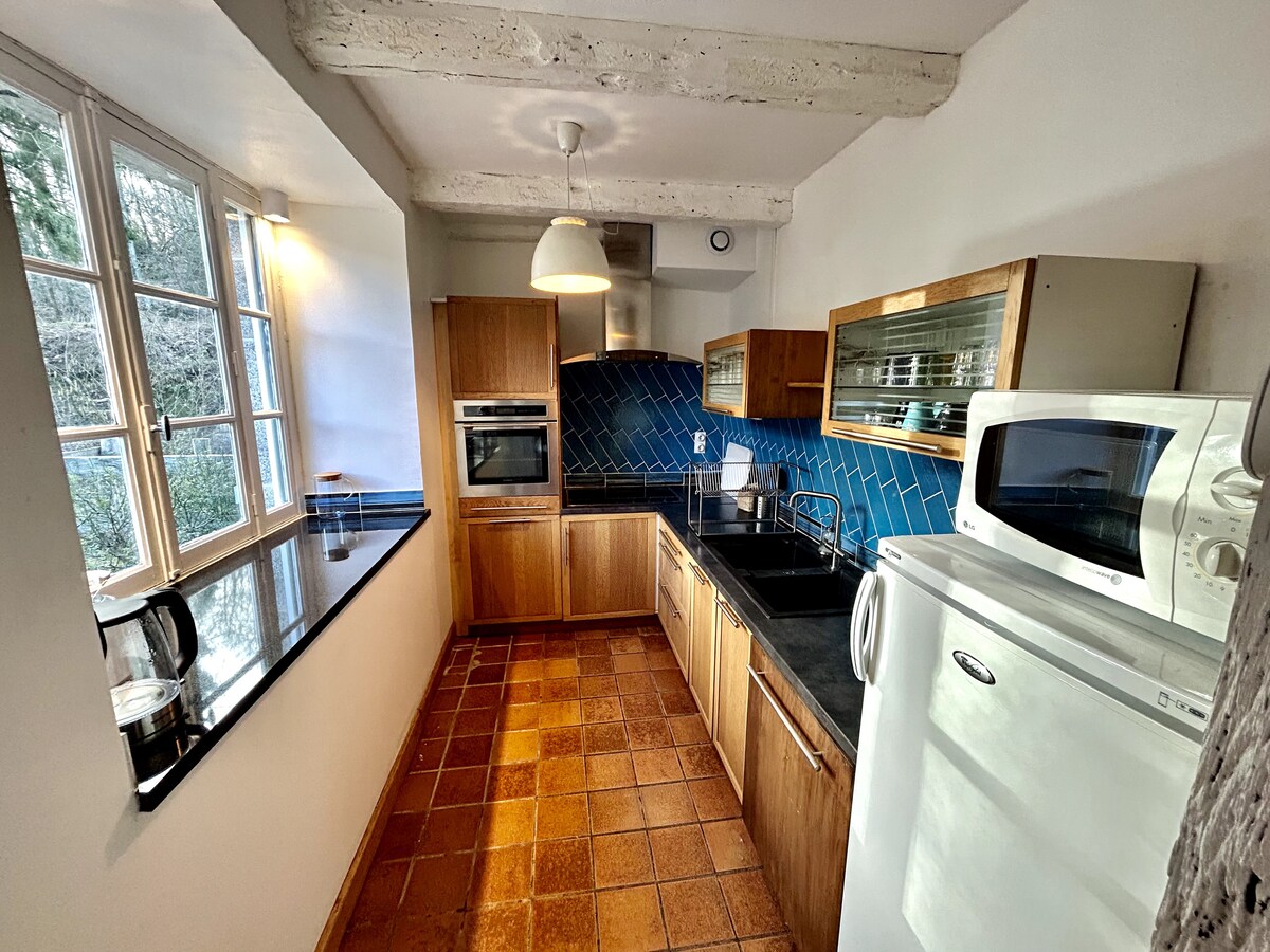 Charming Breton countryside house, formerly a cider house, located next to Rennes's state forest. Perfect for enjoying nature while staying close to the city. Independent cottage separate from the main house with a private entrance for vehicles. Opposite a pony club and an organic farm. 7 mins from the ring road and 20 minutes from Rennes city center. 6 minutes from the train station, supermarkets, and shops in Betton. Fougères Castle: 30 mins. Mont Saint-Michel: 50 mins. Saint-Malo: 60 mins.