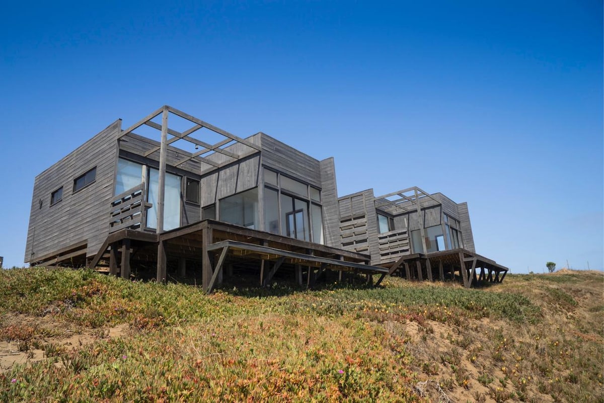 Stay in a house with an incredible ocean view, a different proposal and architecture, all the necessary amenities and unparalleled privacy. You'll be minutes from the beach, the river, and the estuary. You will have a grill, board games, coffee maker and electric heating at your disposal. We are pet friendly with some exceptions. In addition, we have extra paid services such as a jacuzzi, telescope, welcome, bicycles, kayak and SUP. Spacious parking and road suitable for all vehicles