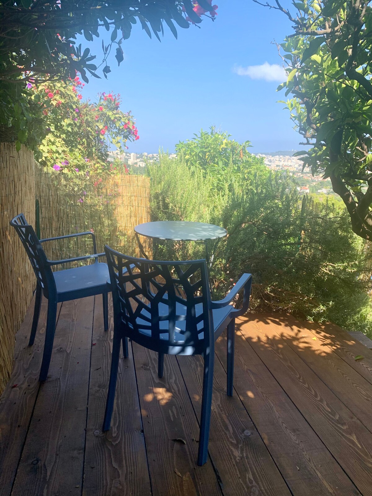 Between Nice and Antibes, sea view Very residential neighborhood - Air-conditioned room, bathroom, toilet, breakfast (coffee, tea, croissants, bread, yogurt, jams) on the terrace facing the sea - quiet, sunny view linens, towels, fridge available: antibacterial gel easy and free parking - swimming pool and park in the residence- -beaches 15 minutes' walk - jogging dance in departmental park 2 minutes away- shops - hypermarket - restaurants - sncf train station, trains 15 minutes' walk to Cannes-Monaco-Nice Airport 20 minutes by car