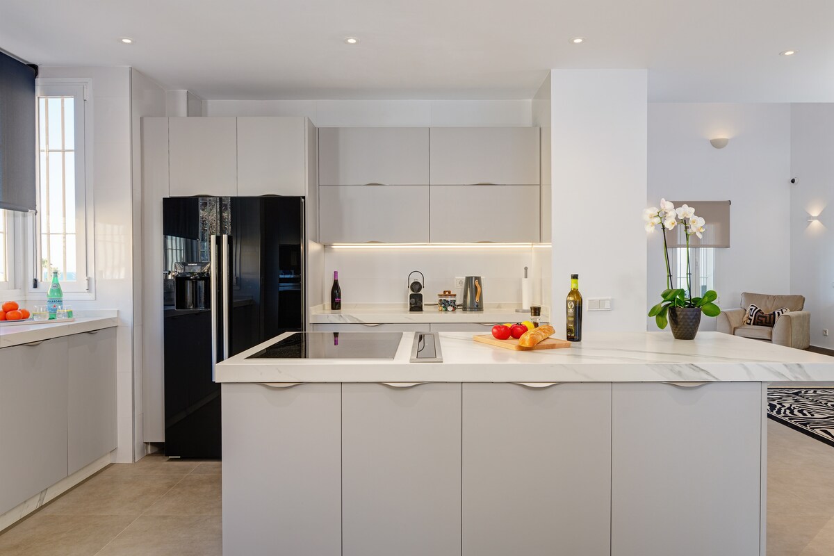 traumhafte, nagelneue geschmackvolle Wohnung mit Blick aufs Meer - Mitten in La Cala de Mijas - komplett neu renoviert & ausgestattet & super gemütlich eingerichtet - Diese Wohnung verbindet das einmalige Flair von Sonne & Meer, Wohlfühlen- Entspannen und " Mitten drin Sein im Geschehen" Eisdielen, Restaurants & kleine Boutiquen alles ist in Fussnähe - Zu den nahgelegenen wunderschönen Golfplätzen bist du in 5 Minuten mit dem Taxi . Sei willkommen und geniesse das schöne La Cala de Mijas.