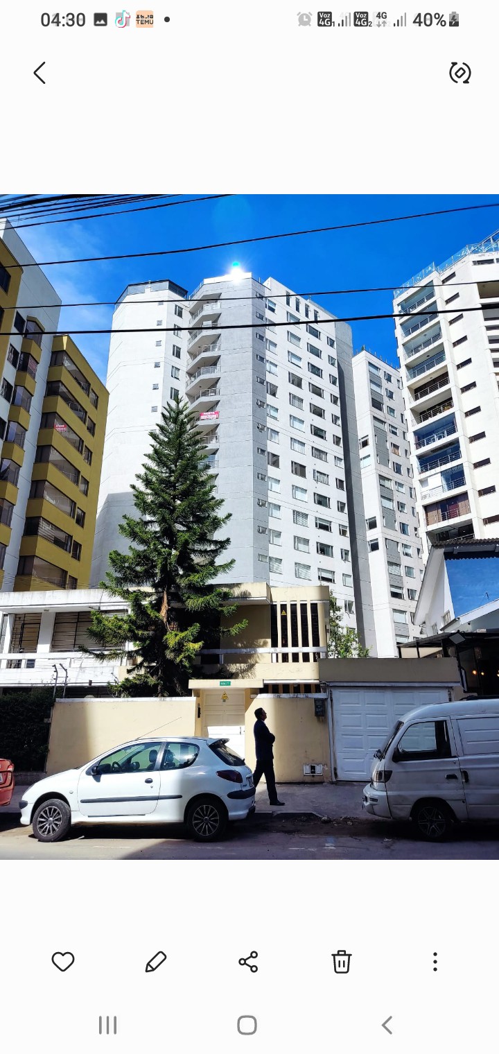 We are located 350 meters from La Carolina Park and the same distance from Metropolitan Park. From the airport, the drive is 40 minutes. Downtown Quito is 5 km away (17 minutes), and the Middle of the World City is 26 km away (40 minutes). Free parking, 24-hour reception, and free Wi-Fi. In the apartment you will find: 2 bedrooms 2 bathrooms living room equipped kitchen, dining room, washer and dryer 2 flat-screen Smart TVs 24/7 security