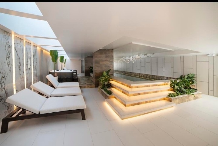 Suite with a pool, gym, and panoramic view