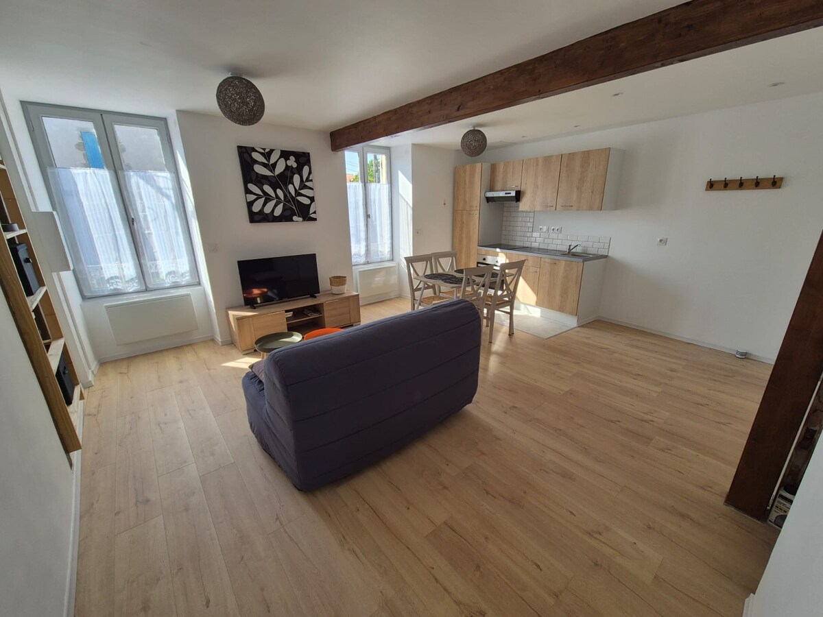 Simplify your life in this peaceful and central non-smoking 2-bedroom accommodation in the heart of the city, free parking nearby. You have a supermarket within a 5-minute walk. Hyper U with free electric charging station for 1 hour 30 minutes, the Pérochon high school, the basic fit gym, the market, the halls, a bakery, as well as many restaurants. The accommodation is in the Futuroscope triangle, 45 minutes away Puy du Fou 1 hour La Rochelle Les Francofolies 1 hr 15 min