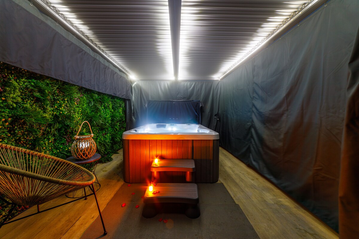 La Parenthèse is a small independent villa of 45 m2, not overlooked, quiet, tastefully decorated. You can enjoy the jacuzzi heated to 38° in summer and winter. The hot tubs and massages will provide you with unparalleled well-being. The hot tub is sheltered under a bioclimatic pergola with waterproof curtains for optimal privacy and comfort. For a special occasion, rose petals and candles on request. Don't hesitate. Breakfast is provided on the first night