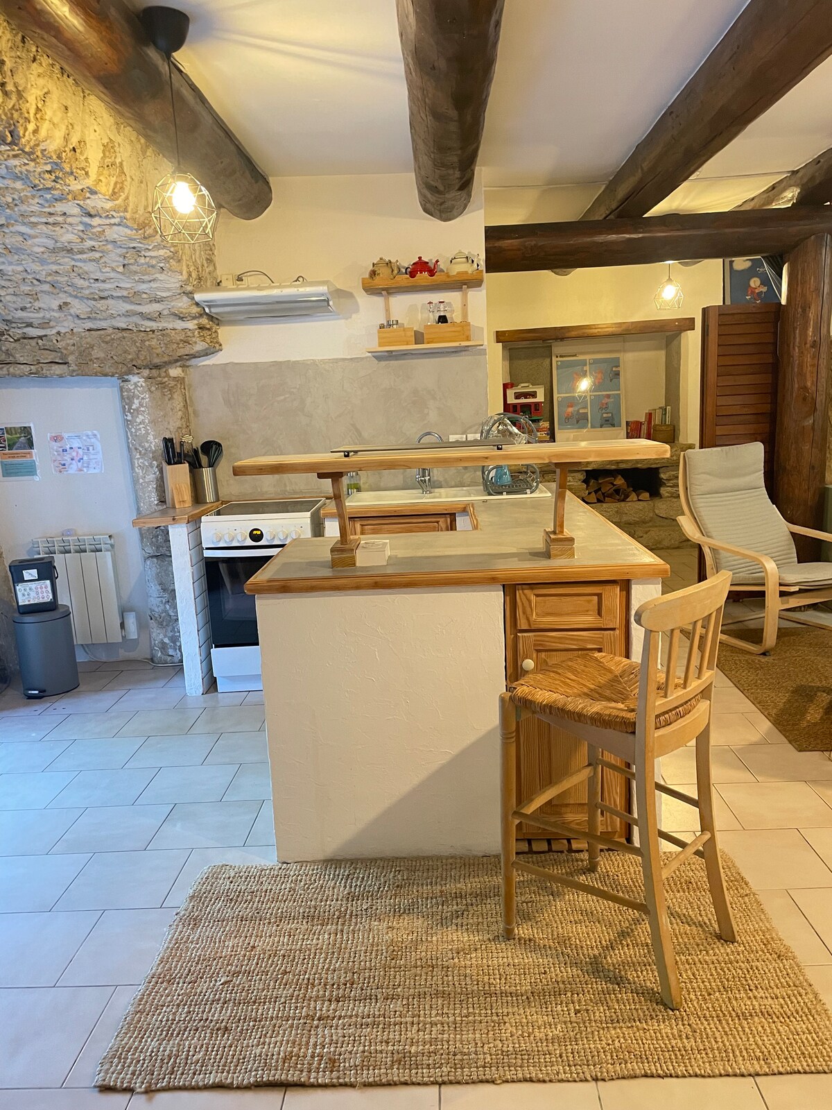Come and recharge your batteries at La Muyre in the heart of nature, lulled by the song of cicadas (sometimes also that of a donkey or rooster) and by the hooting of an owl... But you'll have to climb a ladder to go to bed on a mezzanine (1 or 2 seats), unless you prefer to sleep on the comfortable sofa (1 seat) in the alcove. Access to the pool (shared schedule) and the possibility of walking to the hiking trails and the river from the house...