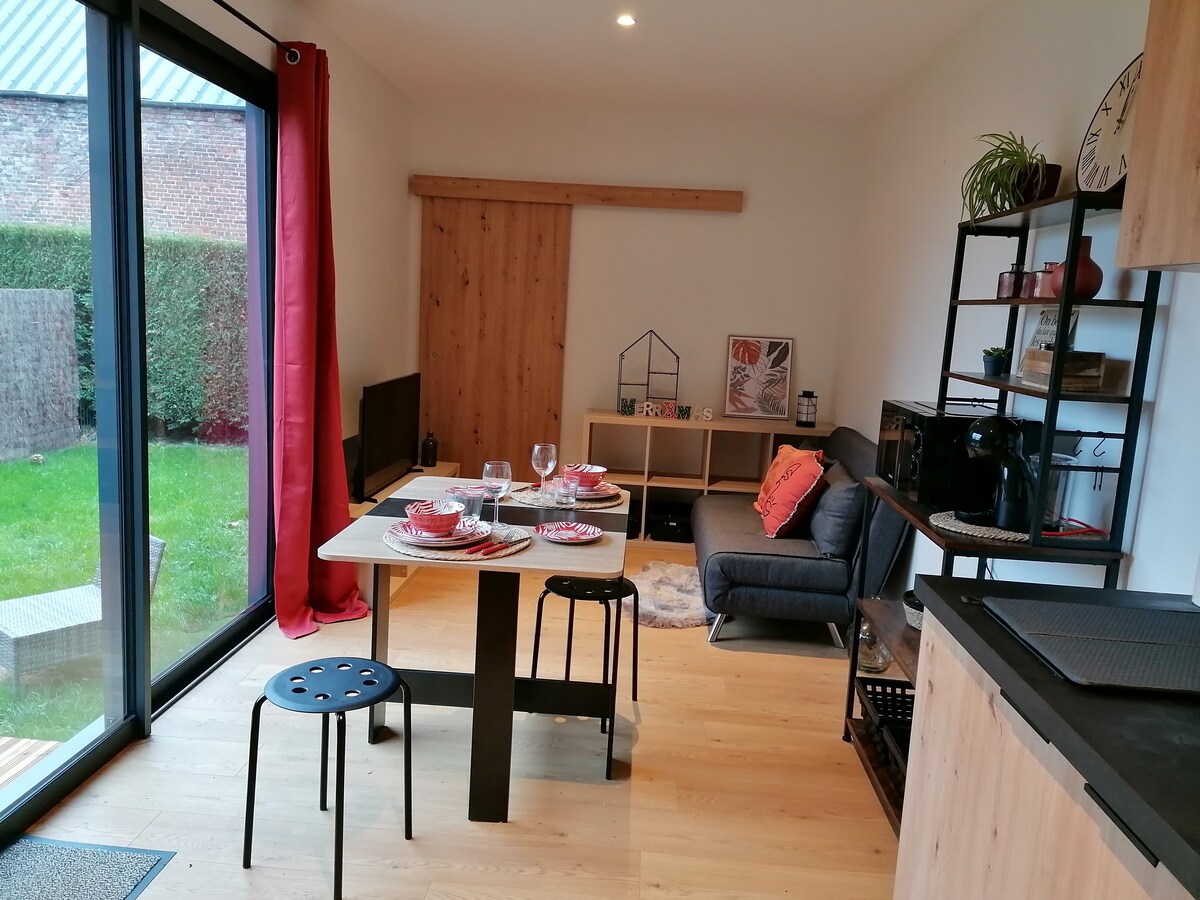 In a village between Valenciennes and Le Quesnoy, this cozy little house will delight nature lovers and active people. Dynamic village, you will find many shops (Coccimarket 7 days a week, butcher, caterer, fritery, brewery restaurant, bakery, La Poste, bank, pharmacy, tobacco-press, hairdressers). In the house you will have an equipped kitchen and dining room, a living room with a sofa bed, a bedroom area, a bathroom and separate toilet.