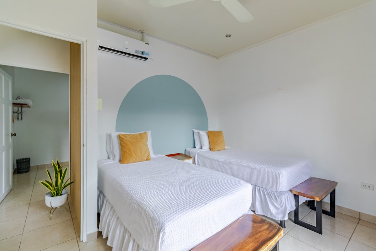 Specially designed to coddle our Airbnb users by providing them luxurious and functional spaces and a touch of immersion in nature that will fill that need for peace and relaxation. Strategically located just 5 minutes away from downtown La Fortuna, this apartment has an indoor private plunge pool/jacuzzi, beautiful views of the Arenal Volcano from its balcony and kitchen, A/C in the room, as well as a bathroom with an open shower with glass roof.