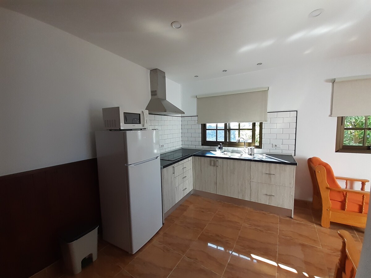 One-bedroom apartment, surrounded by a Canarian garden with fruit trees and palm trees, near the pool and barbecue. Magnificent sunset views from the rooftop.