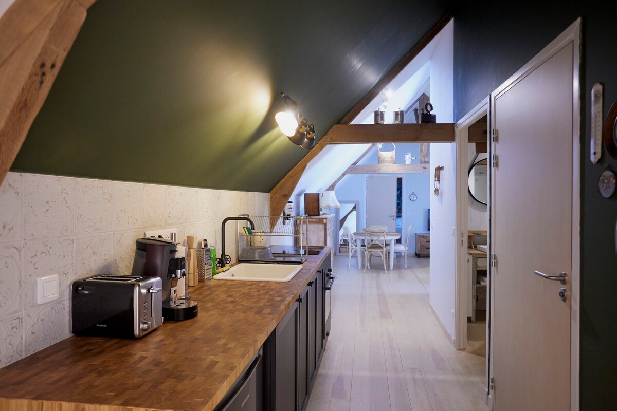 A charming duplex apartment, tastefully decorated, in the heart of Old Lille: - 10 min walk from the 2 stations Lille Flandres and Lille Europe - 10 min walk to Rihour metro station or Lille Flandre metro station - 5 min walk to Grand-Place - 1.5 km (20 min walk) from Zénith de Lille - 12 km from Grand Stade Pierre Mauroy in Villeneuve-d'Ascq (15 min by car or 40 min by metro) - 12 km from Lille-Lesquin Airport Underground parking, V'Lille bikes, buses… everything is nearby.