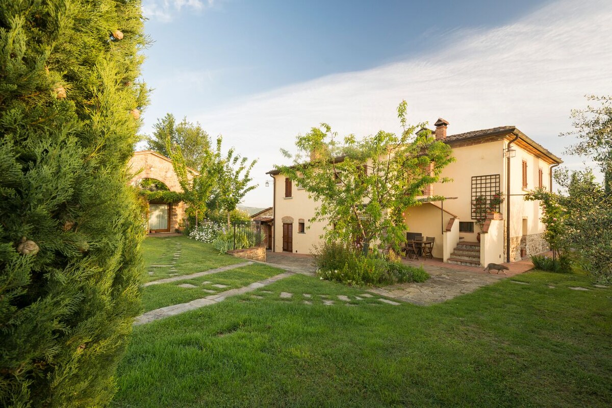 ‘Il Fienile’ is in an enchanting position immersed in the beauty of the Tuscan hills, with a breathtaking view of the surrounding countryside. It is located in the hamlet of Catignano in Gambassi Terme, just a few kilometres from San Gimignano. The house sits in a protected oasis surrounded by a beautiful private park with olive trees, a pond, pine trees and woods, where you can walk, relax and enjoy the pleasures of unspoilt nature. A unique experience entirely to be enjoyed.