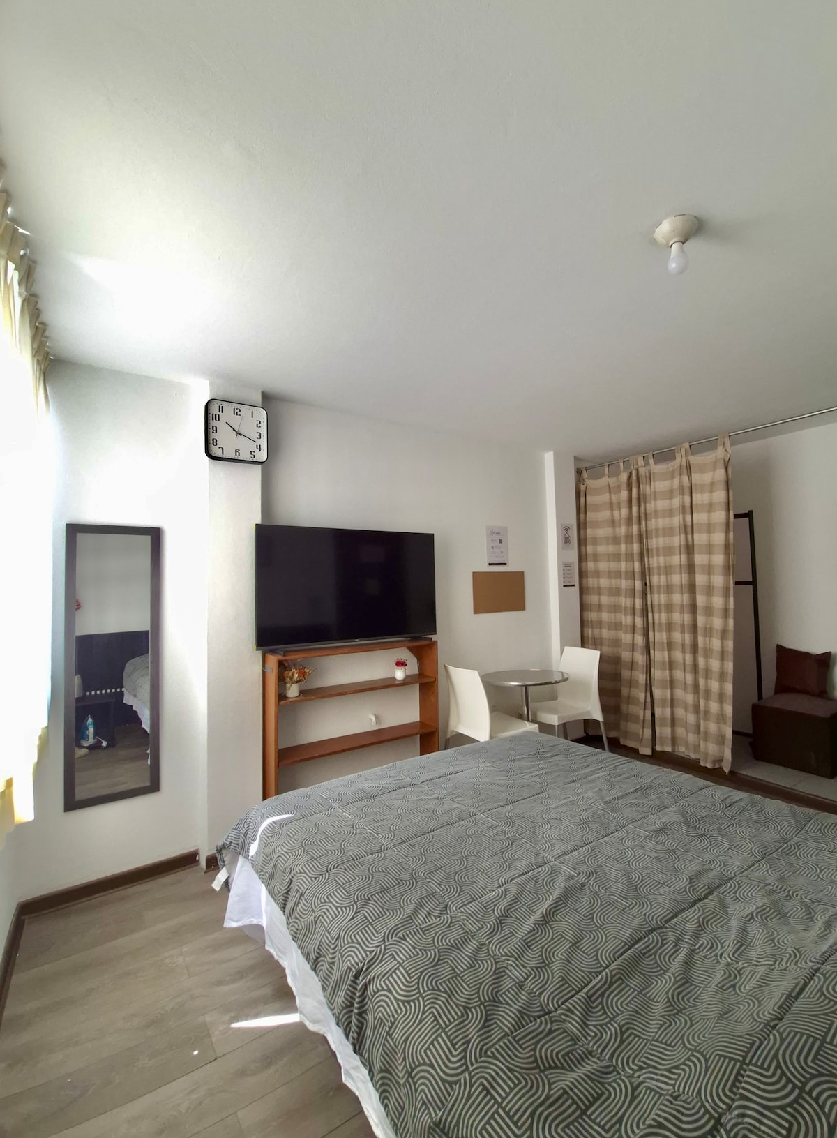 Modern, spacious and cozy studio, with everything you need for a great stay. All-inclusive (Services, internet, wifi, Kitchen, refrigerator, microwave, kitchenware, dining room, jacuzzi, full bathroom (hot water all the time), Queen bed and laundry), has air conditioning. Close to main avenues, institutions and others. Guest profile: those who like to live with respect, cleanliness and tranquility. With air conditioning.