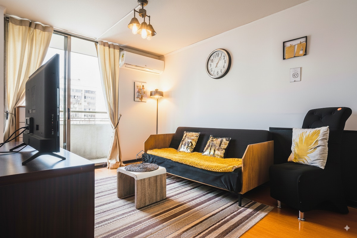 Welcome! Enjoy your stay in a brand-new apartment, designed for you to relax after a day exploring the city. Located in the heart of Santiago, you'll be steps from the subway, buses, shops, restaurants, museums, and the best views of the city. Paseo Bulnes, Almagro Park, La Moneda, Cerro Santa Lucía, Lastarria/Barrio Italia. It has everything you need: a comfortable bed, a fully-equipped kitchen, Wi-Fi, and plenty of amenities. Everything you need to explore Santiago!