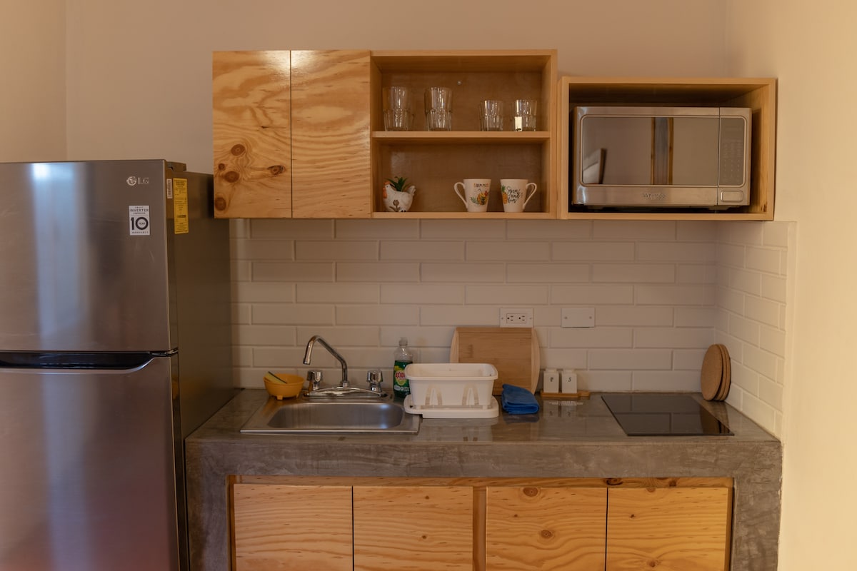 ✨ Rooftop with tub 1 block from the sea Enjoy incredible sunsets from your private rooftop Jacuzzi. This modern condo is perfect for a romantic getaway or a relaxing break. Located in a quiet area, just one street from the sea and surrounded by palm trees and sea breeze. 🛏 1 comfortable room 🛁 2 full bathrooms 👙 Private rooftop with tub ☕ Equipped kitchen + air conditioning 🌐 Wi-Fi and parking included Relax, disconnect!