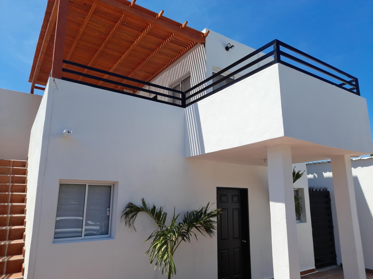 Déjate consentir en este renovado alojamiento. Tenemos todo lo necesario para una estancia placentera: cama extra cómoda, asador, terraza, jardín y una pequeña alberca tipo plunge pool totalmente privada para ti y tu pareja. Y si quieres explorar, estamos a pocos metros de la playa, a 5 min. en carro del malecón, y rodeado de plazas comerciales, restaurantes y tiendas de conveniencia.