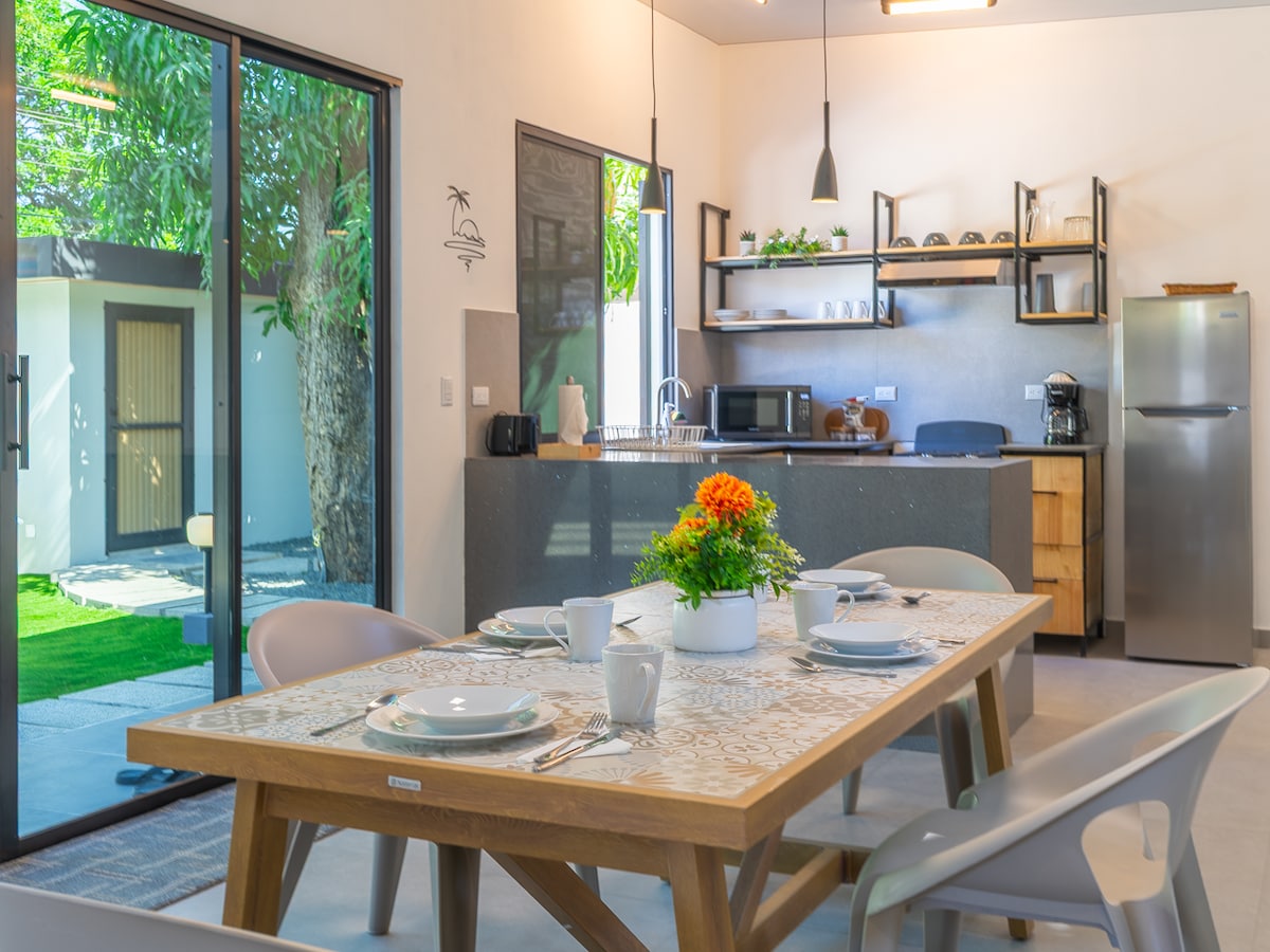 Las Mañanitas is a newly constructed beach villa overlooking the sunrises and the coastal line of the Pacific Ocean. The villa's three bedrooms accommodate up to 8 people. Each bedroom has its own full bathroom and balcony, with an amazing view to the ocean. Living room, dining room and kitchenette all within the same living area, with frontal view to amazing infinity pool. The villa is located inside a gated community with security 24/7. It has direct access to the private beach.