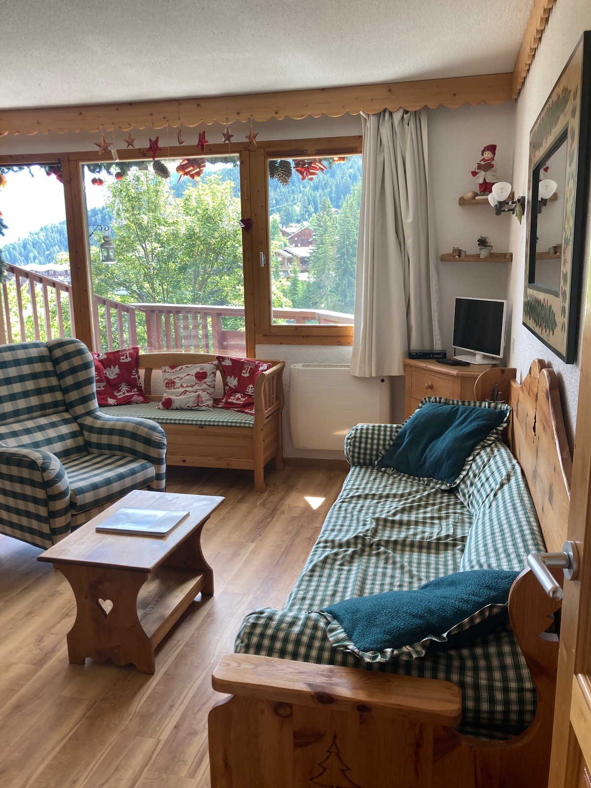 TREATMENT PRICE 2026 €950/21 nights Read carefully in PLANS - description of the neighborhood for station access With its superb view of the Grand Bec, a summit of 3,398 meters above sea level, this very bright and fully furnished apartment can accommodate up to 4 people. Located on the upper level of the chalet, it has a bedroom with a double bed or two single beds. In the living room you will also find a sofa bed (size 120x200). 1 dog accepted under conditions (€5/day) Cats not accepted