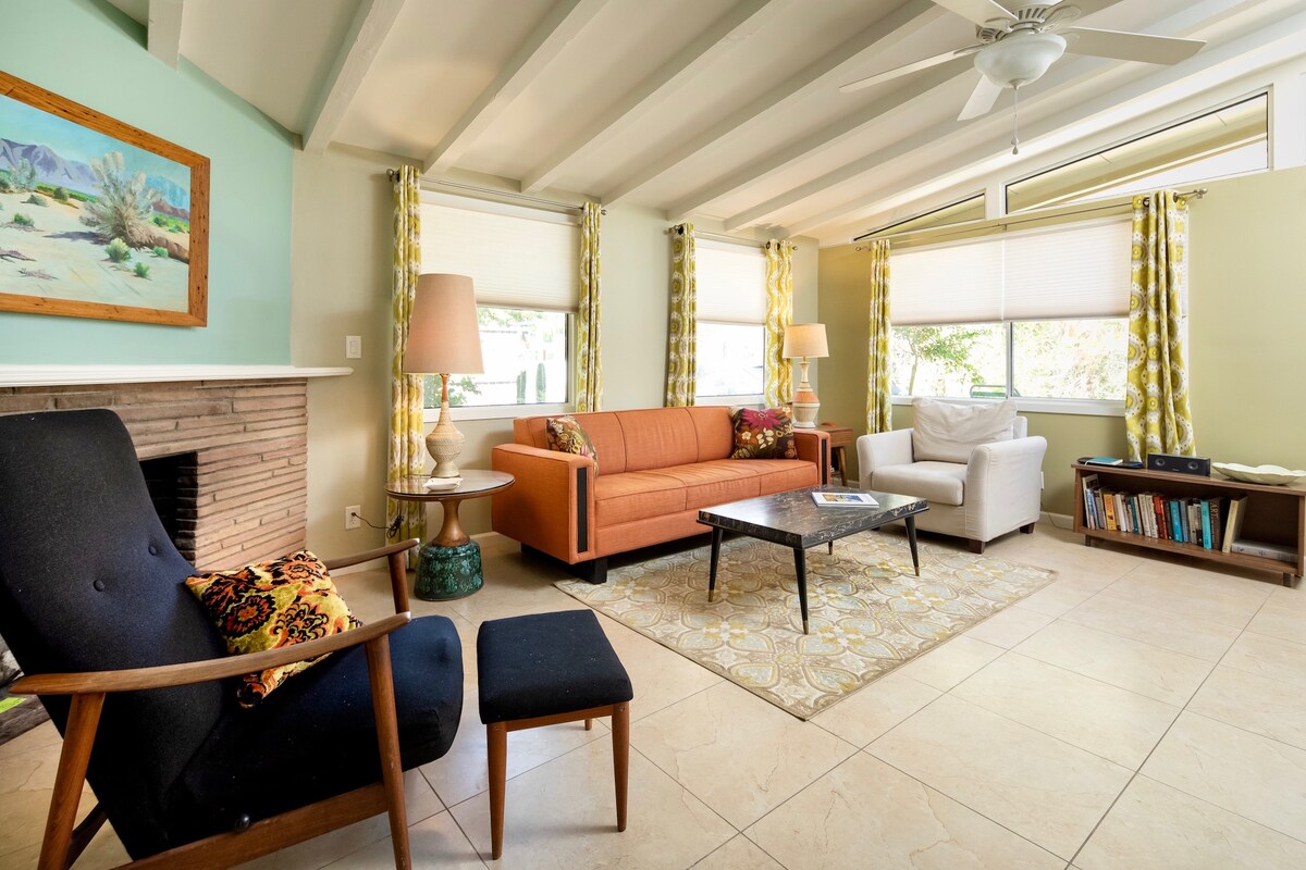 Casa Palma is an authentic MCM bungalow on three secluded lots with numerous shaded seating areas and lovely mountain views. A delight for bird watchers! Renovated to retain its original vintage charm while providing all the modern comforts of a cook’s kitchen, open plan living room, bathroom with large shower, A/C, luxury bedding, and high-speed internet. Read the reviews and you'll see why Casa Palma is one of the most serene and special properties in the La Quinta Cove! Permit: 259000