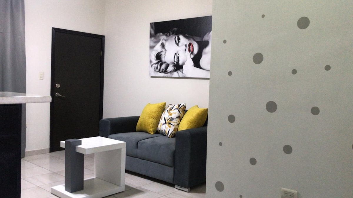 Departamento 2B (Incluye HBO MAX🟣/DISNEY PLUS🟡/ AMAZON PRIME 🔵/ ⚫️ APPLE TV ) Equipado: * 1 cama KING ( 👑) *Boiler Eléctrico (AGUA CALIENTE 🔥 ) *Minisplit (frio/calor) *Microondas y licuadora *Parrillas Eléctricas *Frigobar *COCINETA (Vajilla/Cubiertos)