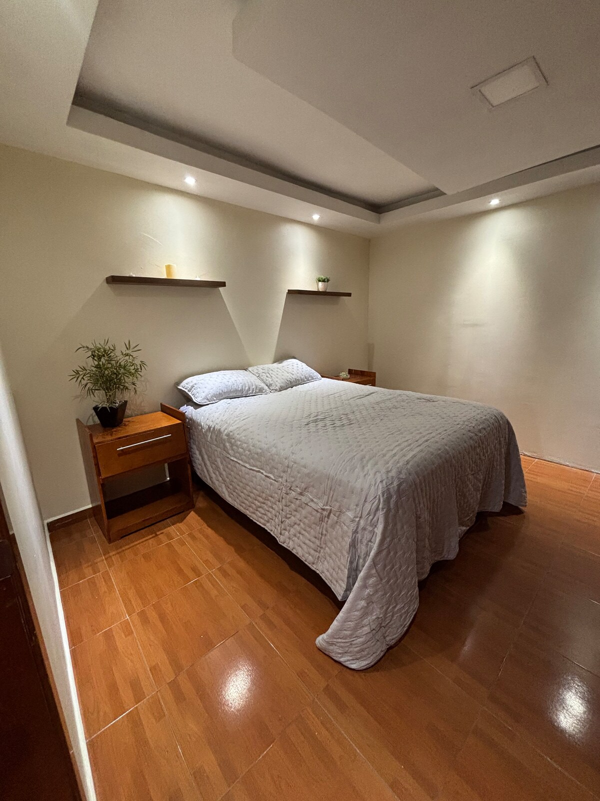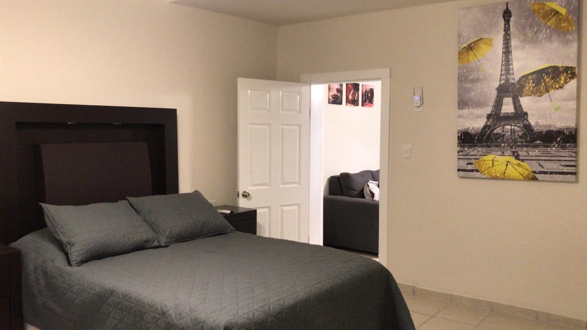 Pretty space to get rest, it is an independent apartment on the first story. Independent entrance. Mini split inside with bedroom, closets and everything you need to feel in home. Now it includes a washer machine to make your stay more comfortable!