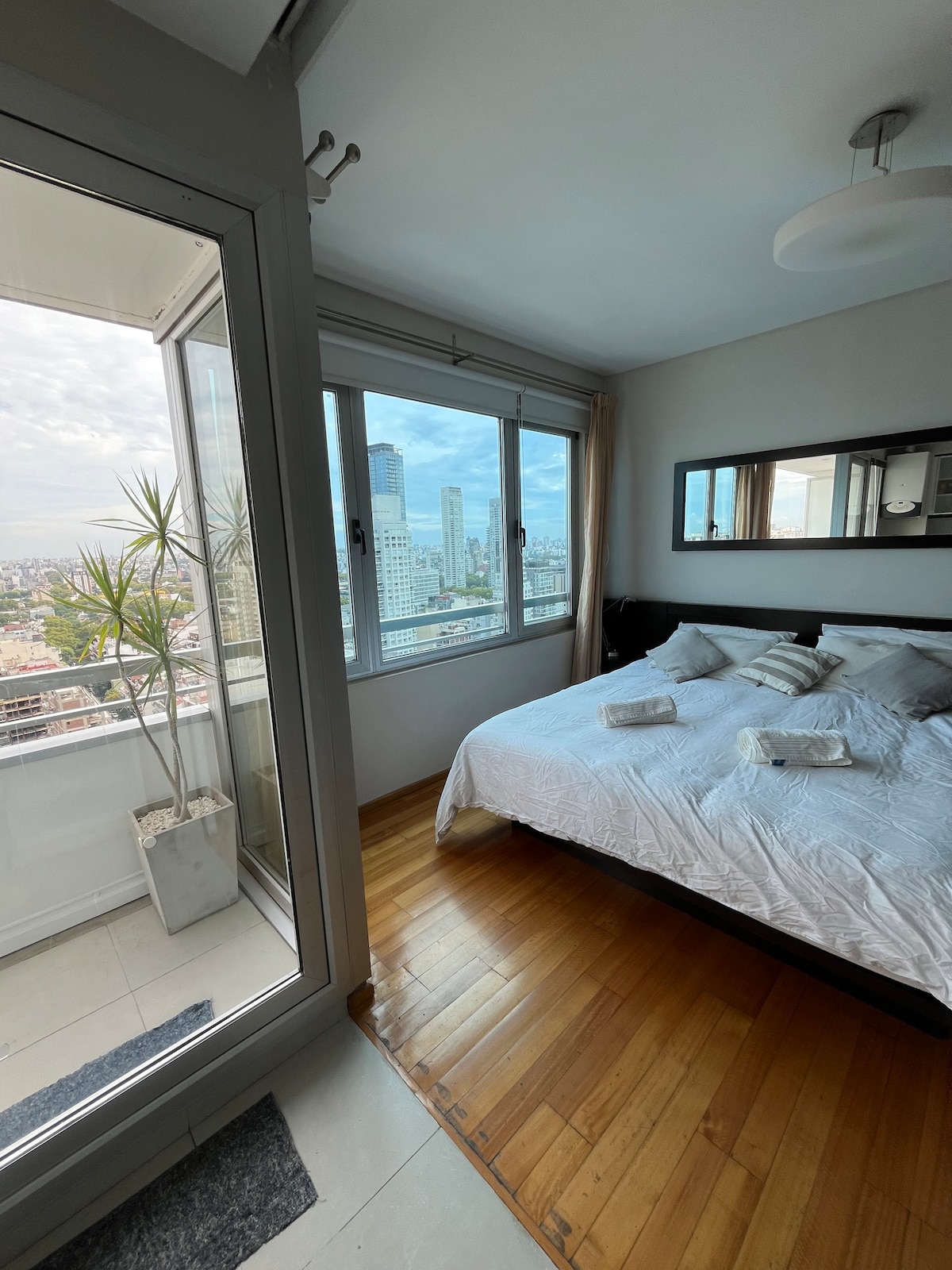 This bi-level 25th floor apt. in Palermo Soho is wonderfully spacious and is flooded with sunlight by day, thanks to its floor-to-ceiling windows looking out across the city Building with 24 security, pool open Nov 15 to Apr 15. Check in: 14PM & Check out 11AM. Arrival between 20PM and midnight has a late fee of usd20. Booking from the previous day allowed to check in as early 8AM. Check in between Midnight and 8AM is NOT possible. The apartment size Bed is 180 cm by 190 cm.