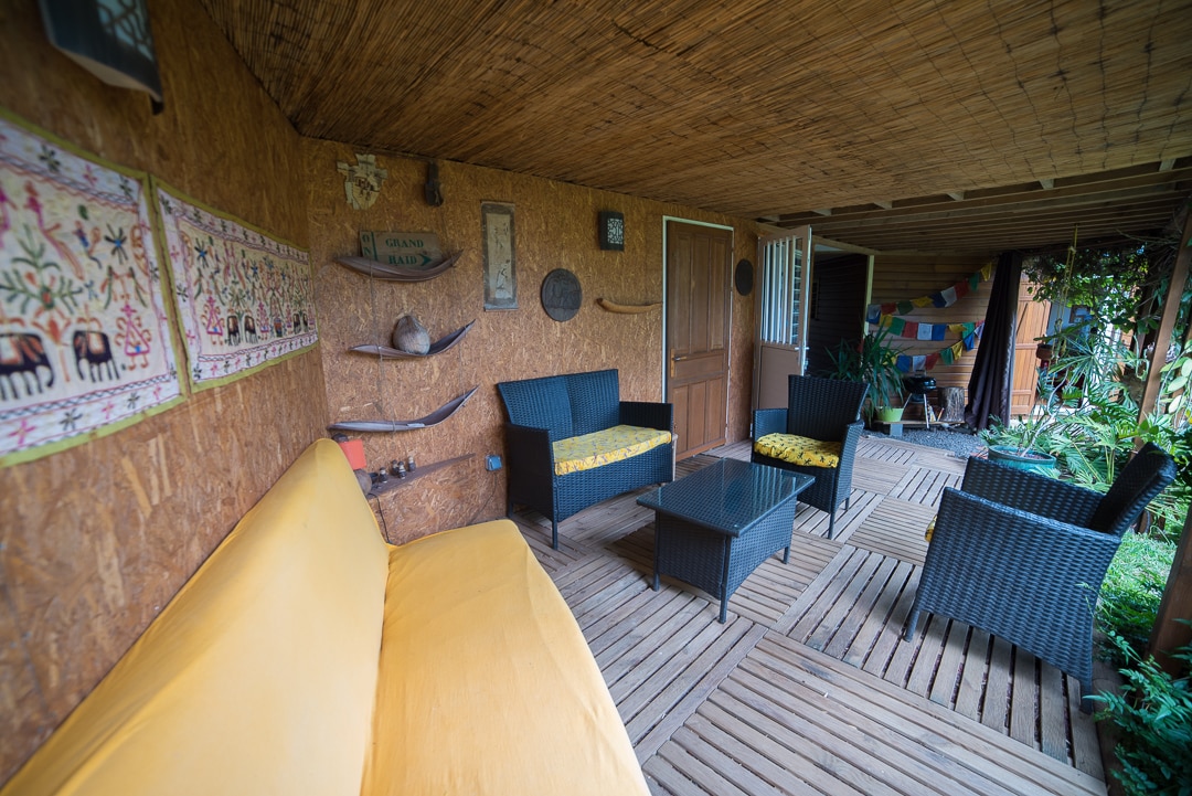 Studio with separate entrance, fully equipped for 2 people, homestay, with terrace and garden, in a all wood house. Bed for 2 + sofa, kitchen, bathroom, well stocked library with guides, books and maps. very quiet, sea view, 5 minutes from the Tamarins road, 15 minutes from the beaches. Shops in the village a few minutes. personalized service to organize your stay, sporting or cultural. Welcome to « L’île intense » !