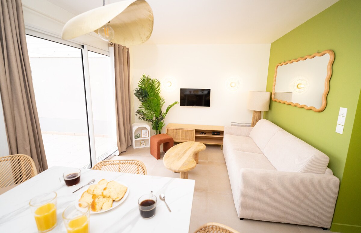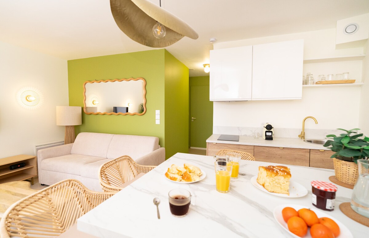 The advantages of this very bright 3*** apartment of 35 m²: - ideally located in the heart of the typical Quartier du Passage, 1 minute from the beach! - new bedding in 2024 Queen Size 160x200! - 1 separate bedroom - sheets and towels included - no additional or hidden costs to add: many of our facilities are available to you free of charge (travel cot, high chairs, beach toys, market carts, etc.) - baggage drop-off possible from 2 p.m. (see details in the announcement)
