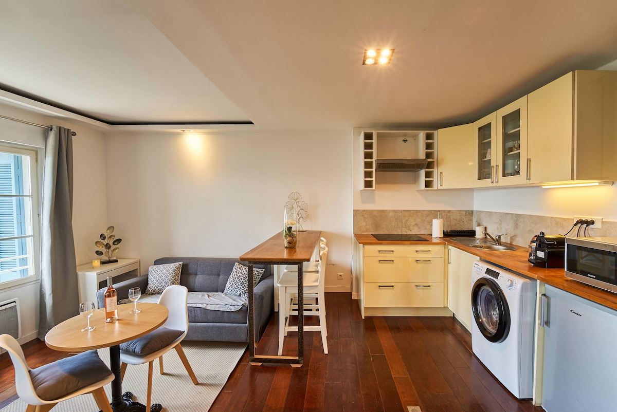 Top floor studio, air-conditioned, on the waterfront of the large fine sand beach of Les Sablettes. Enjoy everything nearby, day and night, such as the beach, restaurants, entertainment... the waterfront... the studio is completely renovated. Located on the 4th and a half and top floor with elevator up to the 4th, in a listed building, designed by the architect Fernand Pouillon. Possibility to book 2 studios on the same floor, ideal for friends or family