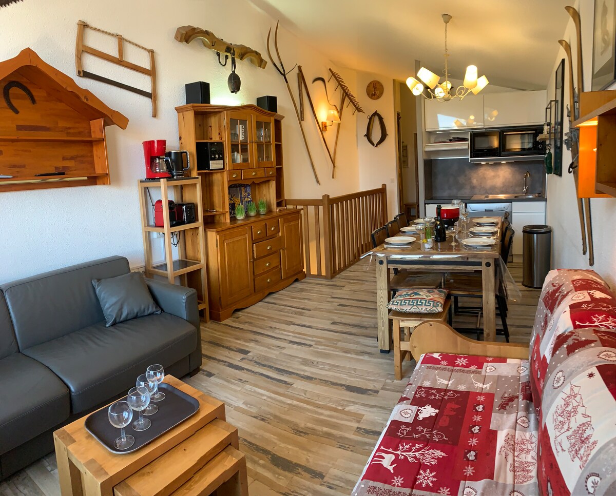 Corner apartment located on the 4th floor under the rooftops, offering a top-floor atmosphere. Adjacent on one side, it guarantees you calm and privacy Facing southeast, skis at your feet and located in the heart of the resort, this apartment will seduce you with its bright and warm atmosphere. Perfectly equipped, it has private WIFI. Parking and supermarket are located just down the street from the residence. Once parked, you can do everything on foot!
