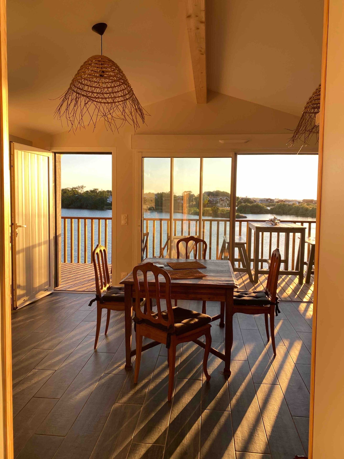 WELCOME TO OUR CABIN! On the water, in the picturesque atmosphere of PORT DE LARROS, on the Bassin d'Arcachon, our air-conditioned cabin is rented all year round. Built in the spirit of the ARCACHON BAY cabins, it includes upstairs: an apartment for 4 (2 adults and 2 children (or young teenagers)). A beautiful 12 m2 terrace overlooks the water. Parking. Optional: . Continental breakfast: €15/pers. . Daily cleaning: €20/day