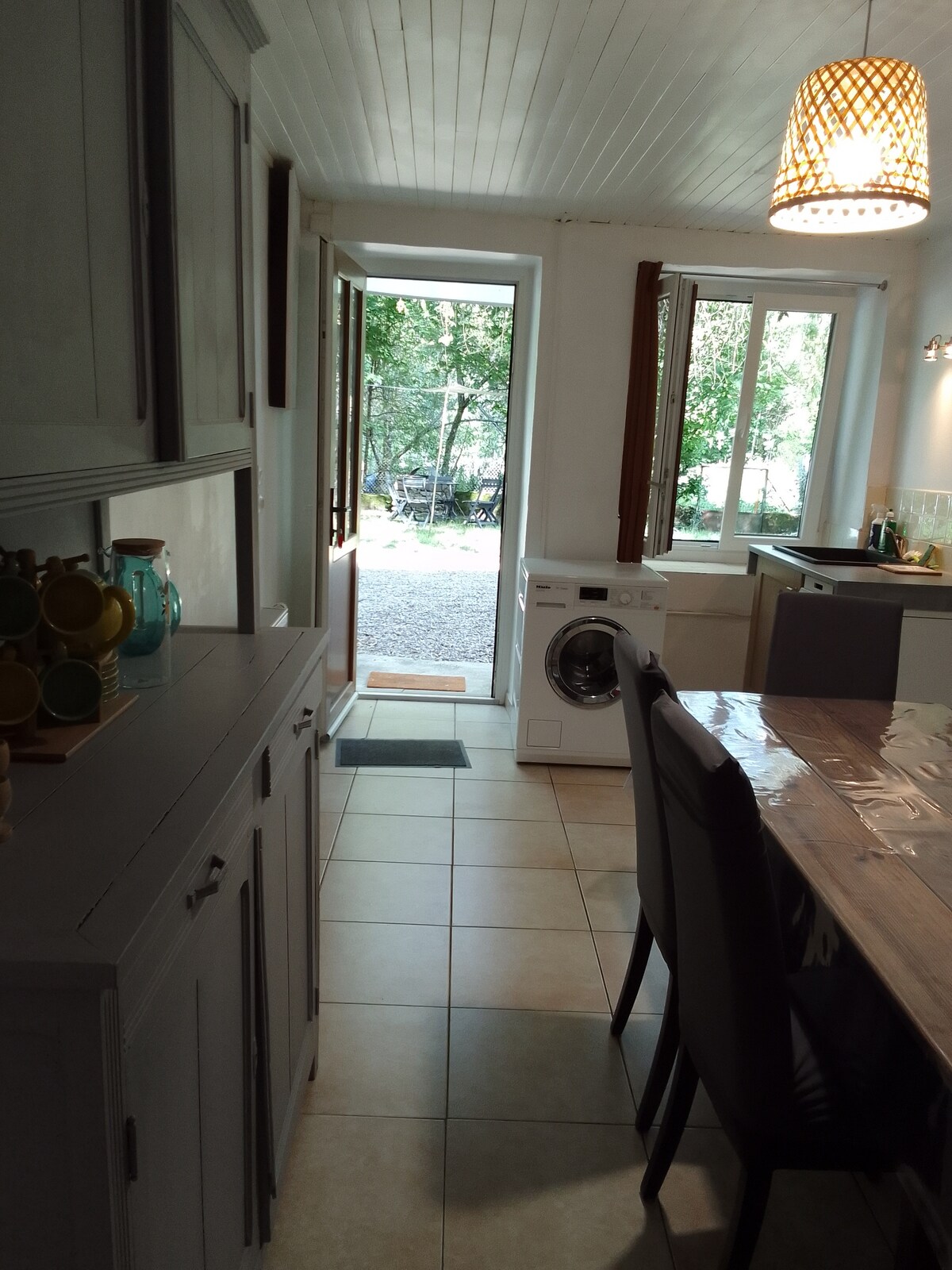 Come and spend a relaxing time in the countryside. Detached house of 140 m2 in a small quiet village. Completely refurbished and decorated in a flea market style. The accommodation consists of 3 bedrooms, a bathroom, 2 separate toilets, kitchen, large living room and garage. You will have a large private terrace with garden furniture and plancha. You will share the enclosed and wooded garden with playground, ping pong table and swimming pool with the owners.