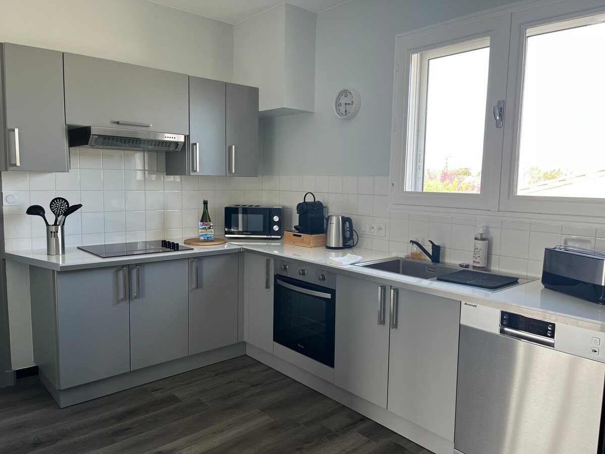 Bright 70 m² apartment in La Tremblade, close to beaches, market, restaurants and bike paths. It has 2 bedrooms, a fitted kitchen, a comfortable living room, Wi-Fi, air conditioning and a modern bathroom. Large private terrace of 70 m² facing south, ideal for meals or relaxation. Private parking. Perfect for holidays, weekends by the sea, or working from home. 🌿🌊 it is possible to store the bikes in a secure garage located about 5 minutes walk from the gîte. Optional linen drying function