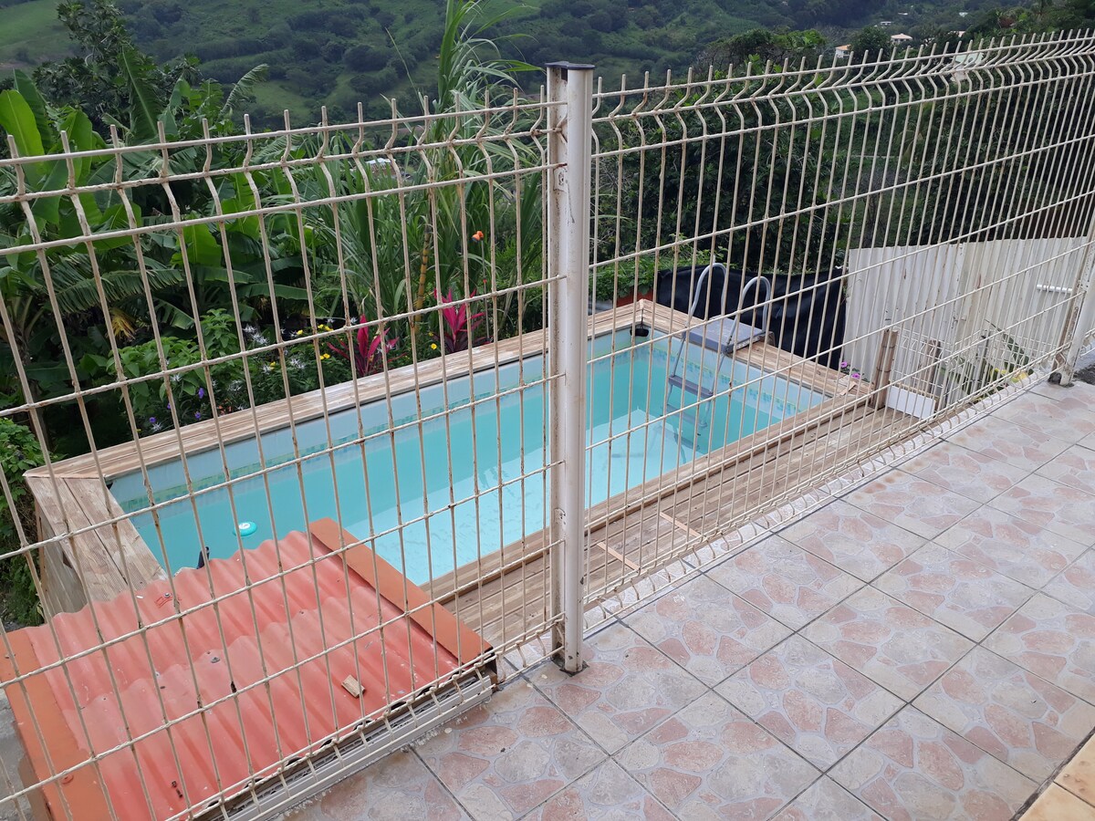 Hello We offer you our cute little bungalow. It is attached to our house but only the main entrance is shared. You will have your own private and independent space. It consists of a 17 m² bedroom with ensuite shower room and a 15 m² terrace with outdoor kitchen. Guests can enjoy the view of the Pitons du Carbet while sipping their ti punch. A small, little-known and charming beach is within 10 minutes' walk.